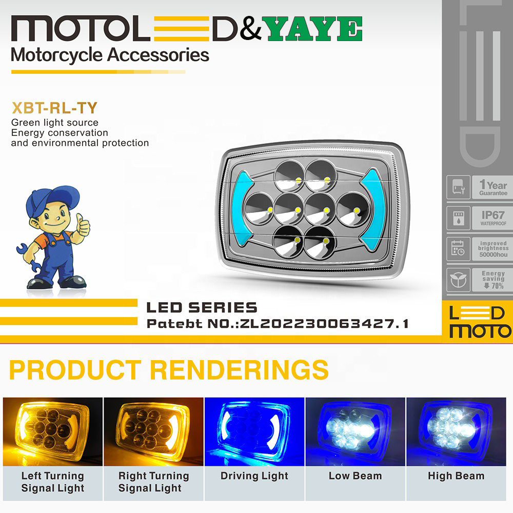 | หน้าที่: | ไฟต่ำและไฟสูง/DRL/ไฟเลี้ยว | สีอ่อน: | สีขาว(ไฟสูง/ต่ำ) สีฟ้า(DRL) สีเหลือง(ไฟเลี้ยว) |