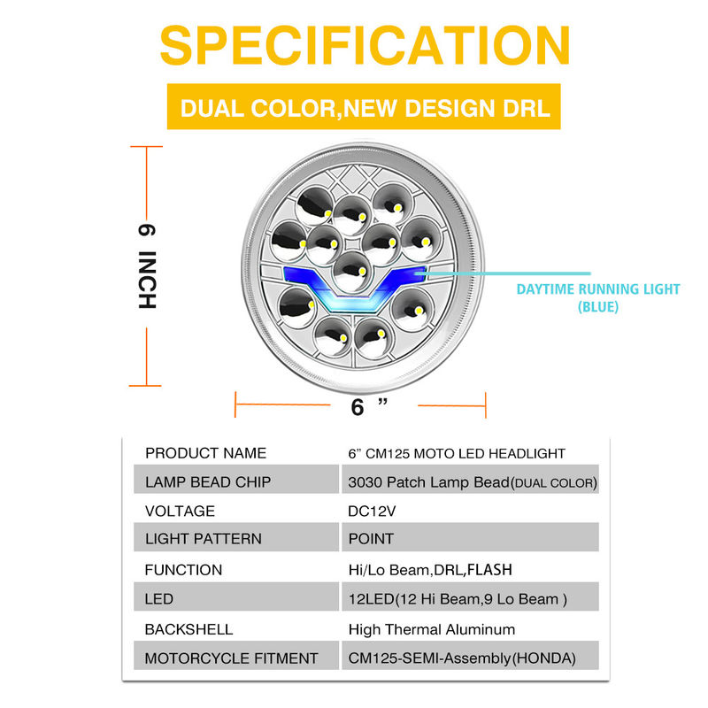 | เน้น: | CM125 ไฟหน้ารถจักรยานยนต์ LED,ไฟหน้า LED มอเตอร์ไซค์ DRL,ไฟหน้ามอเตอร์ไซค์ 6 นิ้ว |