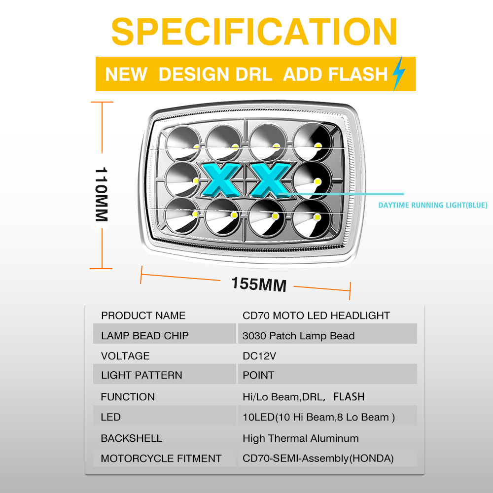 | LED คานต่ำ: | 10 LED White Flash | สี DRL: | สีฟ้า |