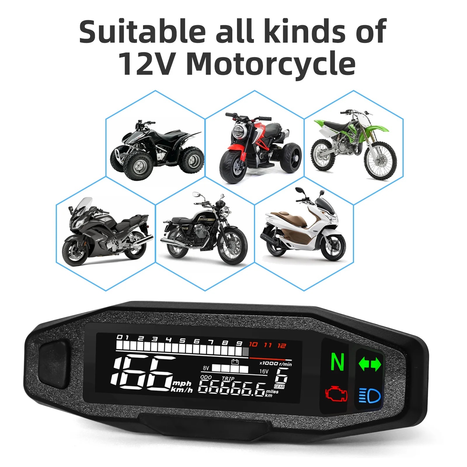 3.การทํางานที่ดีขึ้น: เครื่องวัดความเร็วอิเล็กทรอนิกส์ดิจิตอลที่มีความแรงนี้ ให้บริการในช่วง RPM ที่กว้างจาก 0-12000 เพื่อให้การติดตามการทํางานของเครื่องจักรยานยนต์ของคุณได้อย่างแม่นยําและความดันของ DC12V รองรับการทํางานที่มั่นคง.