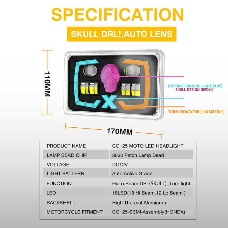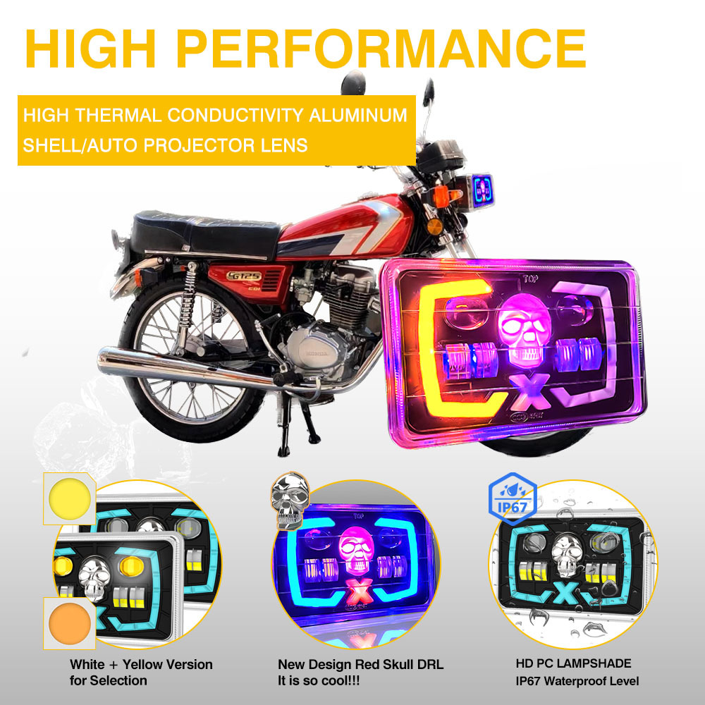 ไฟหน้ามอเตอร์ไซค์ YAYE CG125 แบบกึ่งประกอบ เลนส์โปรเจคเตอร์หัวกะโหลกสีแดง DRL 4