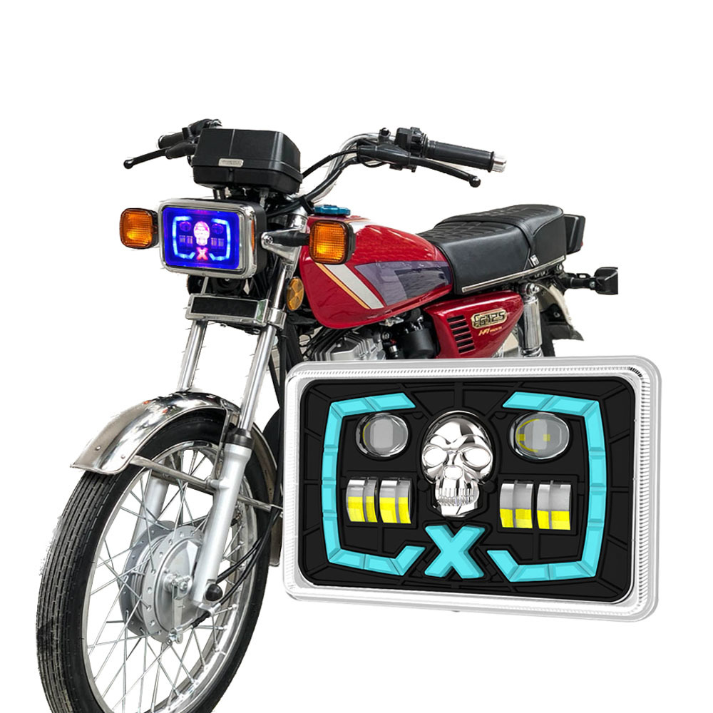 ไฟหน้ามอเตอร์ไซค์ YAYE CG125 แบบกึ่งประกอบ เลนส์โปรเจคเตอร์หัวกะโหลกสีแดง DRL 6