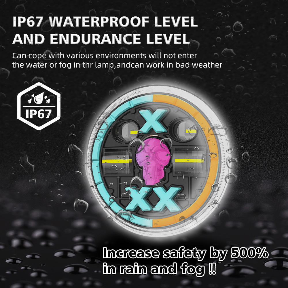YAYE 5.75 นิ้ว GN125 LED อุปกรณ์เสริม กระโหลกแดง มอเตอร์ไซเคิล ไฟหน้า DRL สายไฟต่ําสูง พร้อมเลนส์แสง 0